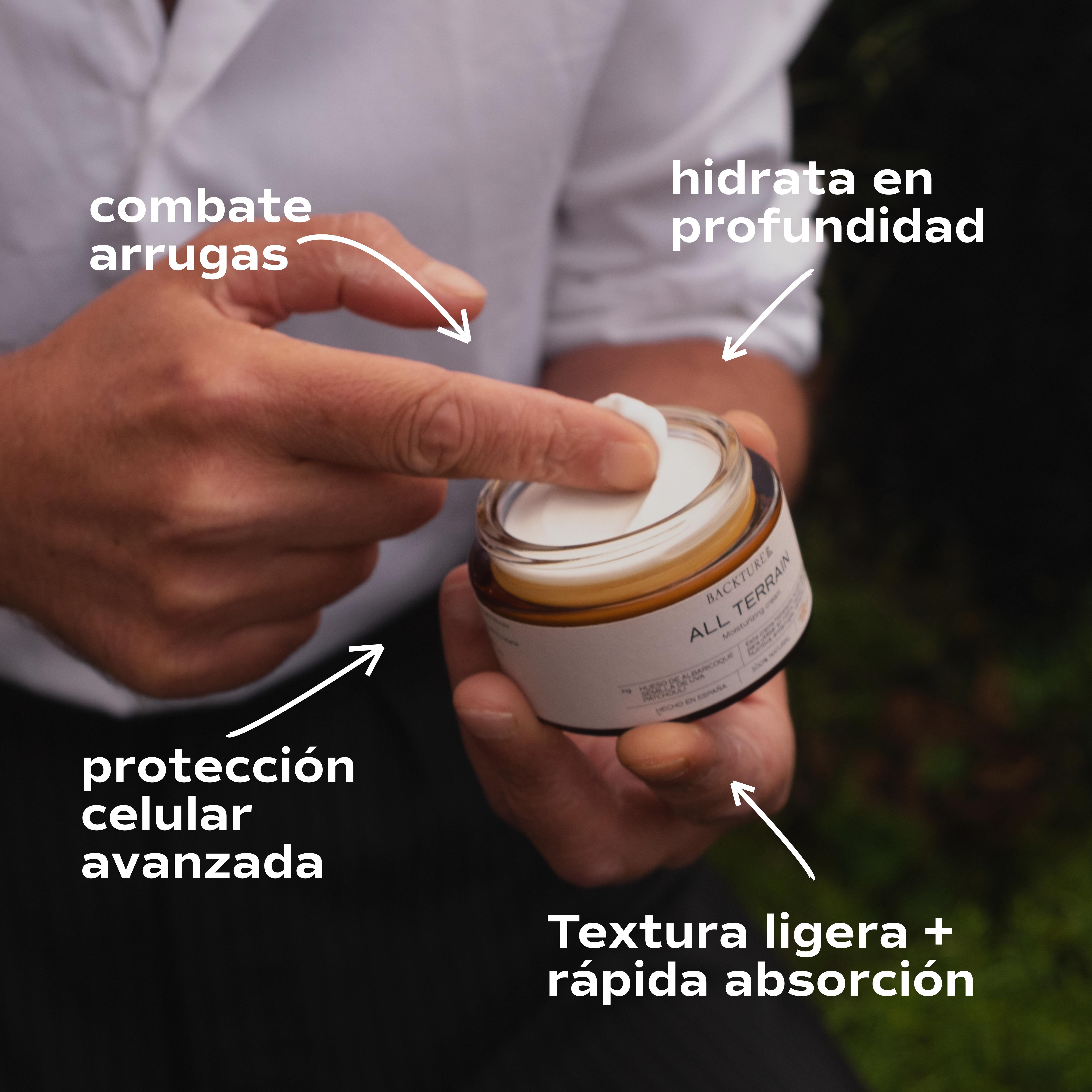 ALL TERRAIN not only combats dryness and tightness but also diminishes expression lines and fortifies facial firmness.