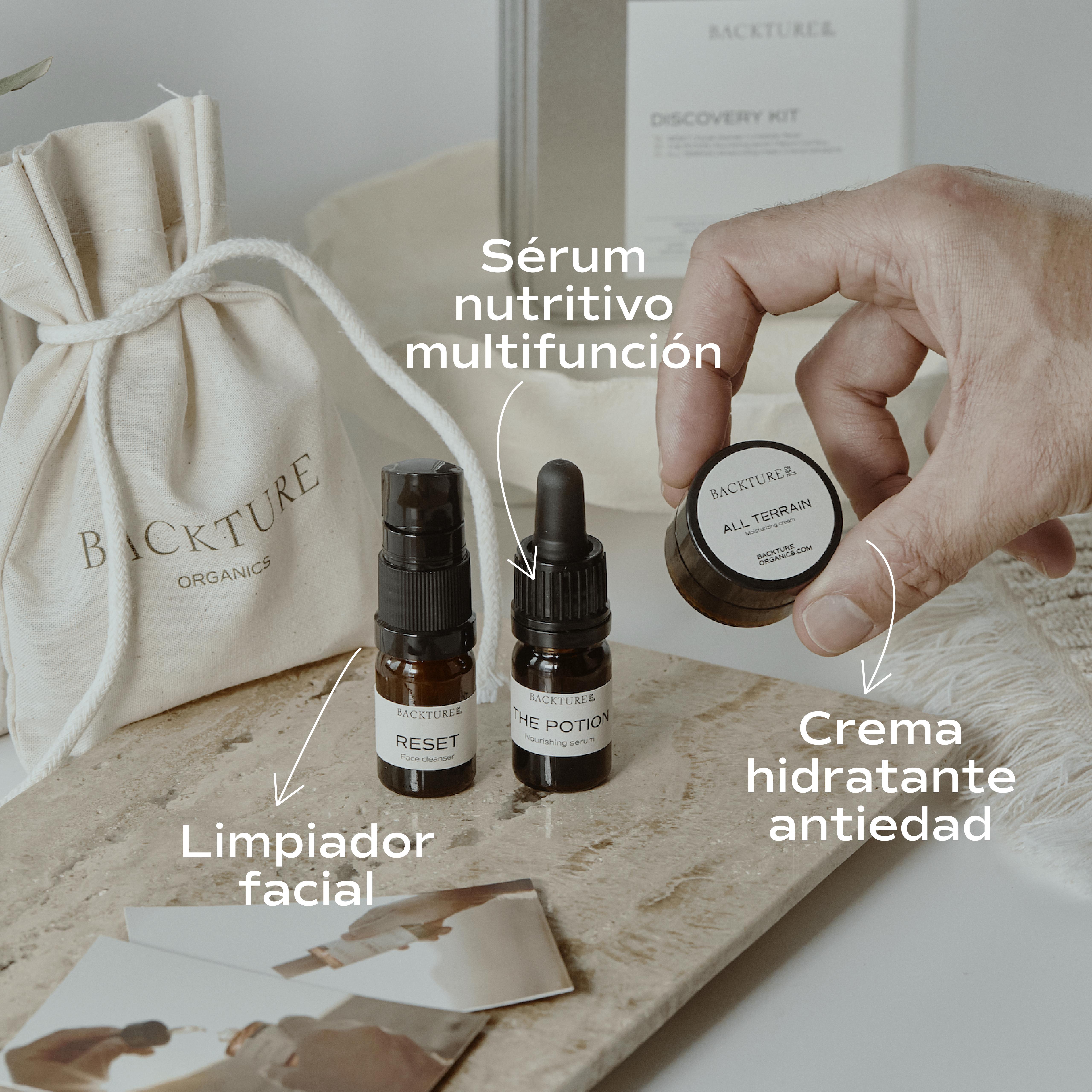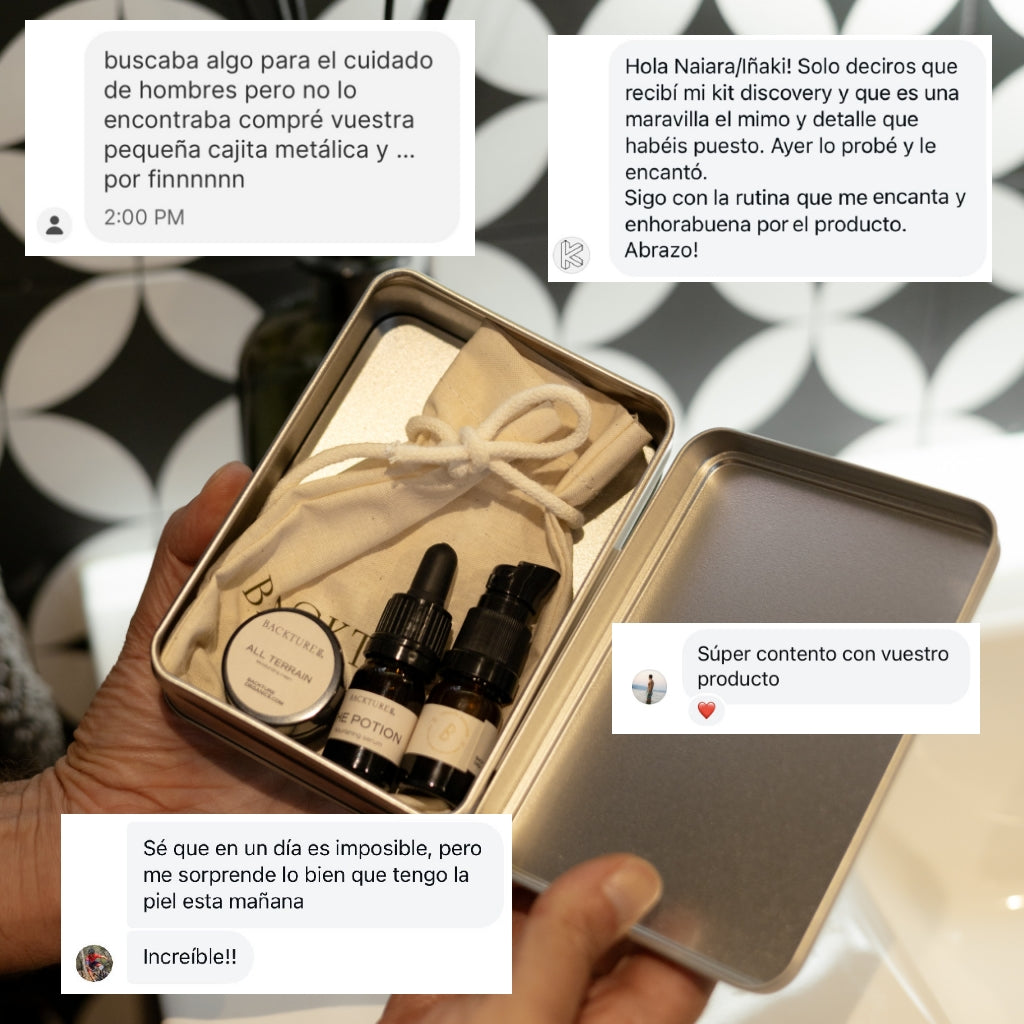 This kit includes our 3 essential products for men's skin care , in mini format so you can try their effectiveness and get to know their aromas and textures.