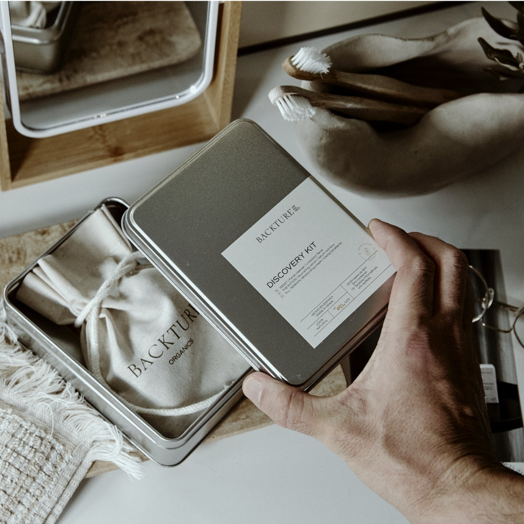 Receive your Discovery Kit beautifully packaged in a reusable aluminum can, perfect for travel or storage.