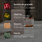 - Pomegranate with firming effects. It promotes collagen production thanks to its high content of punicic acid, improving skin elasticity, reducing the appearance of wrinkles and soothing sensitive and irritated skin.